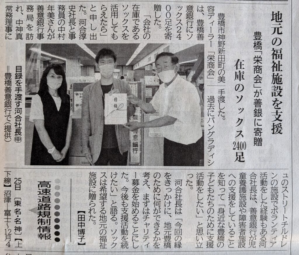 2022年9月15日の東愛知新聞に、豊橋善意銀行さんへの弊社寄付活動の様子が掲載されました。